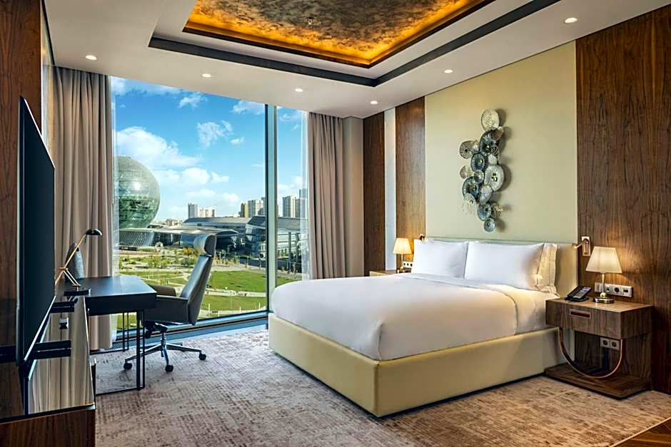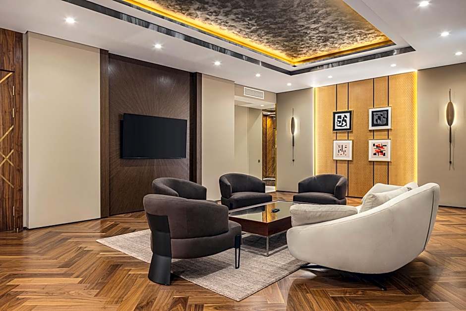 The spacious suite features air conditioning, a mini-bar, a tea and coffee maker, a seating area, as well as a flat-screen TV. The unit has 1 bed.